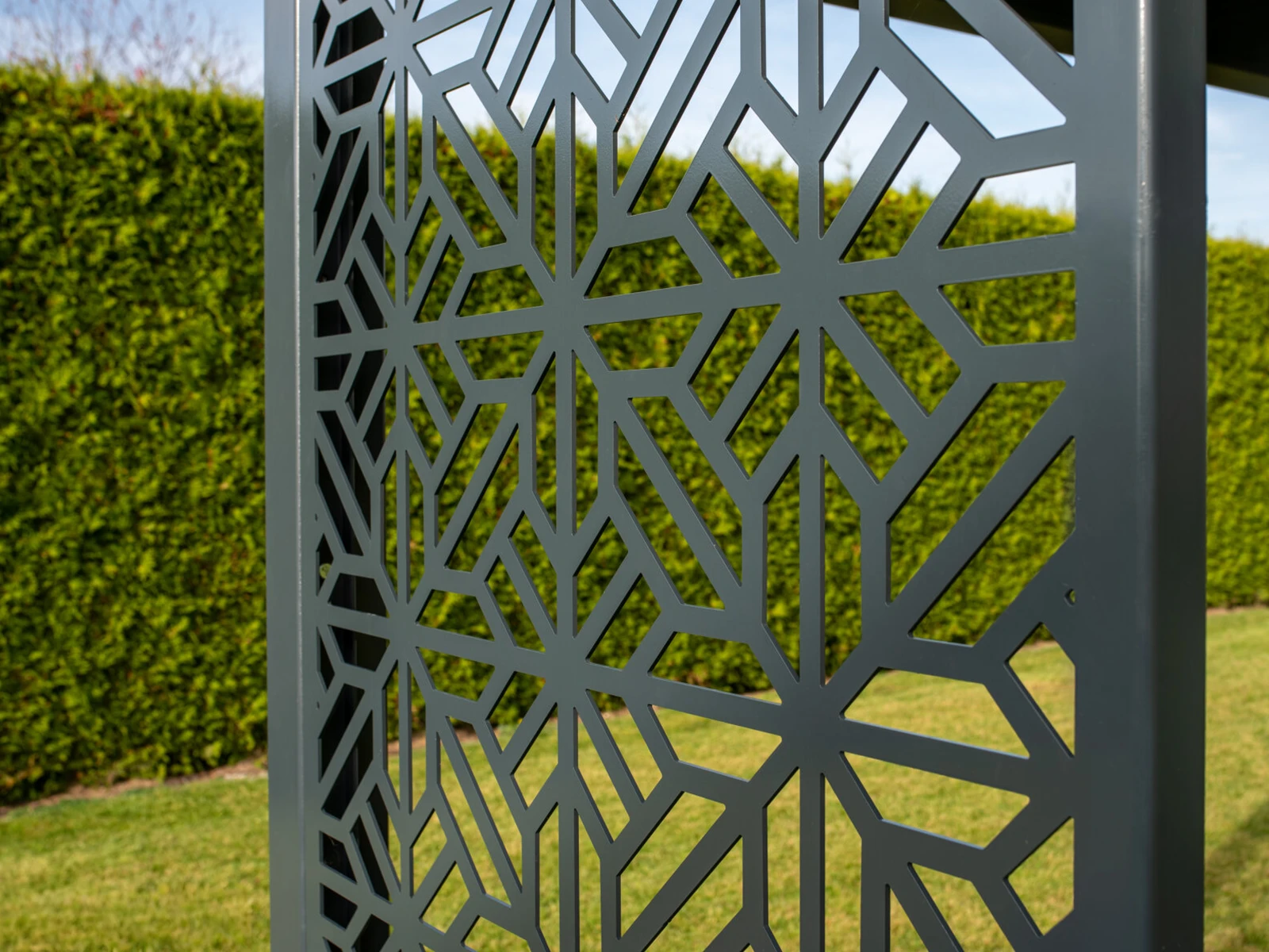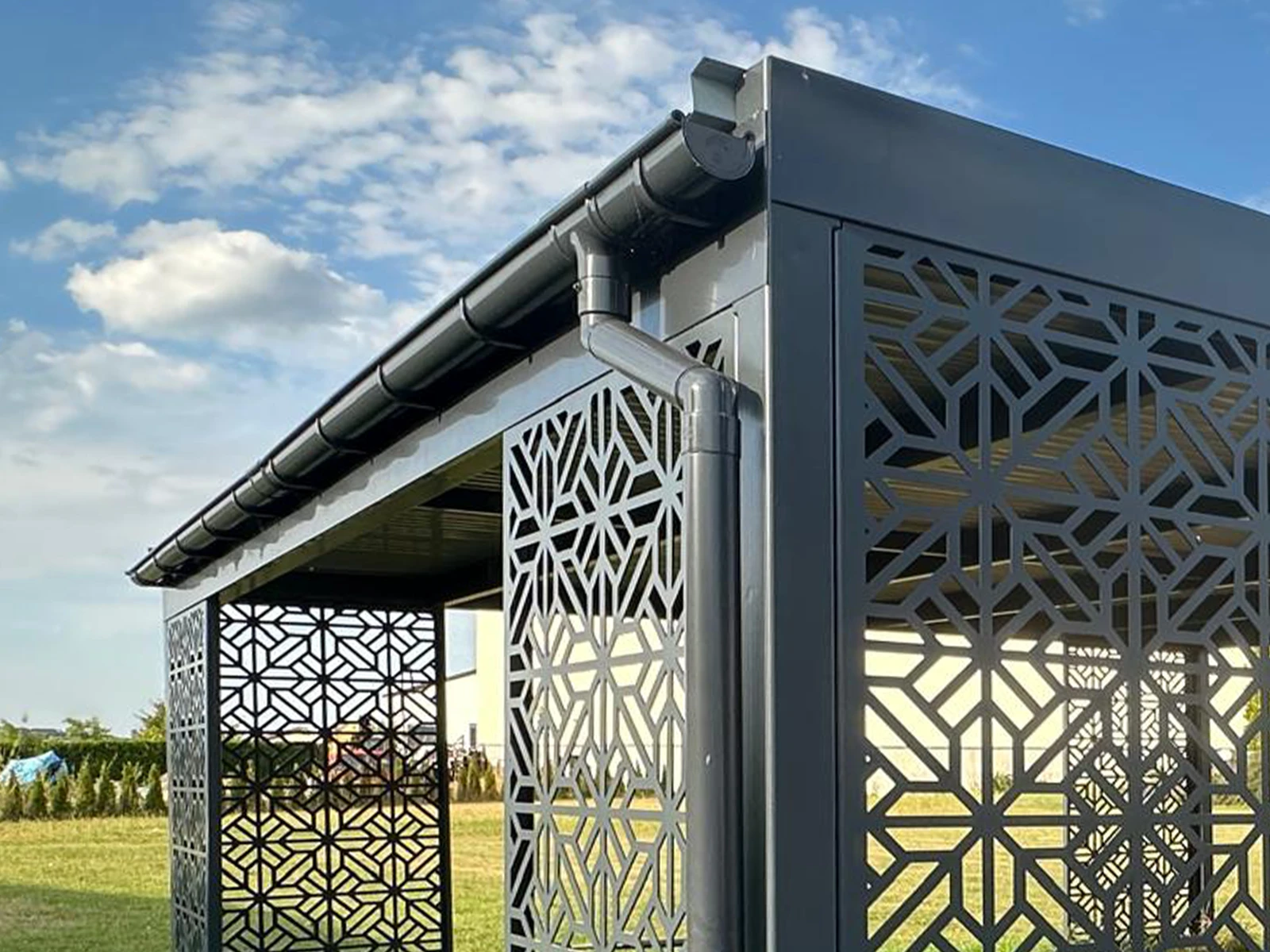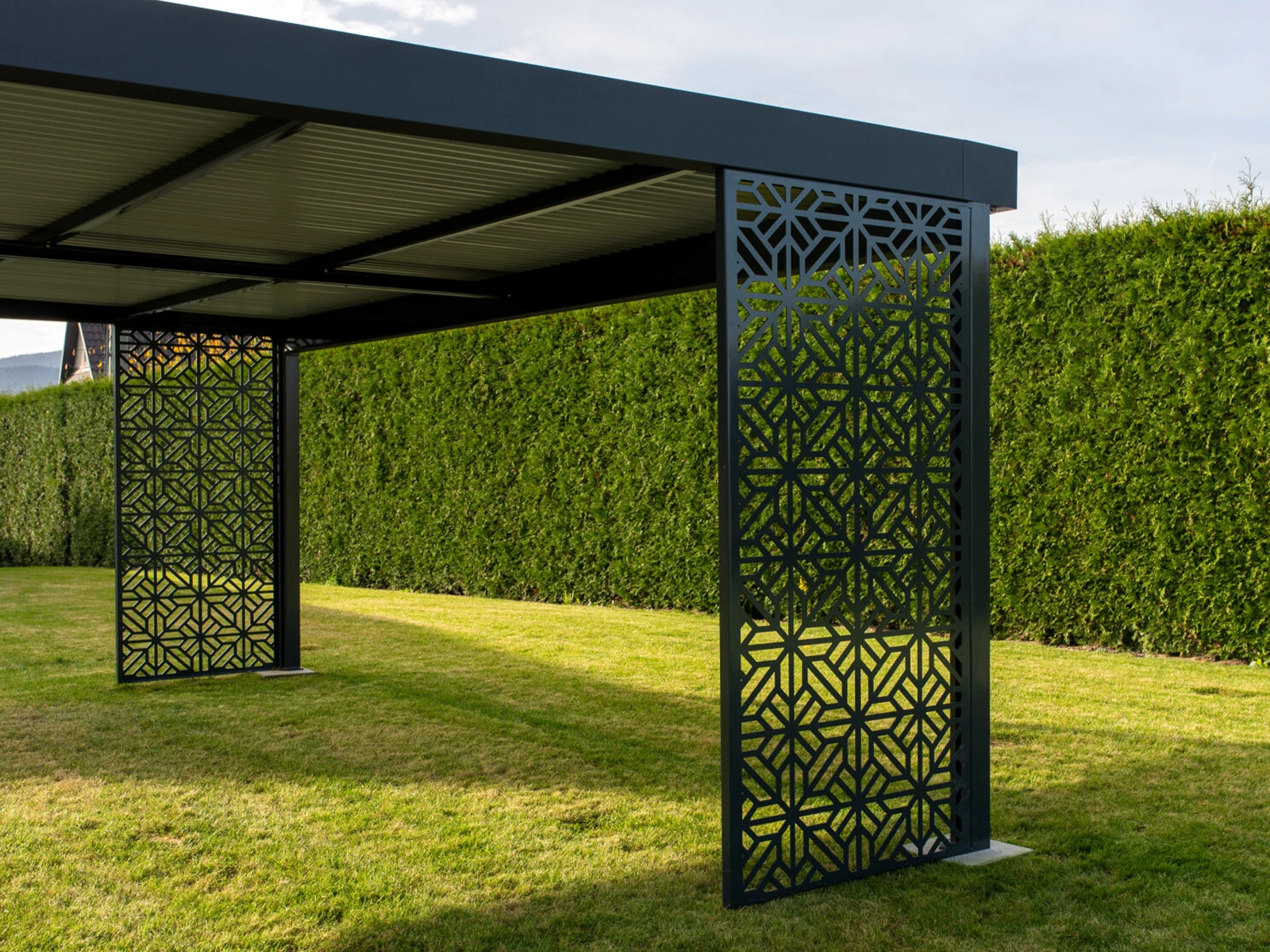 Carport Lézervágott panelek több változatban elérhető: Smart, Standard és Premium, mindegyik személyre szabható különböző színekben és felületekben.